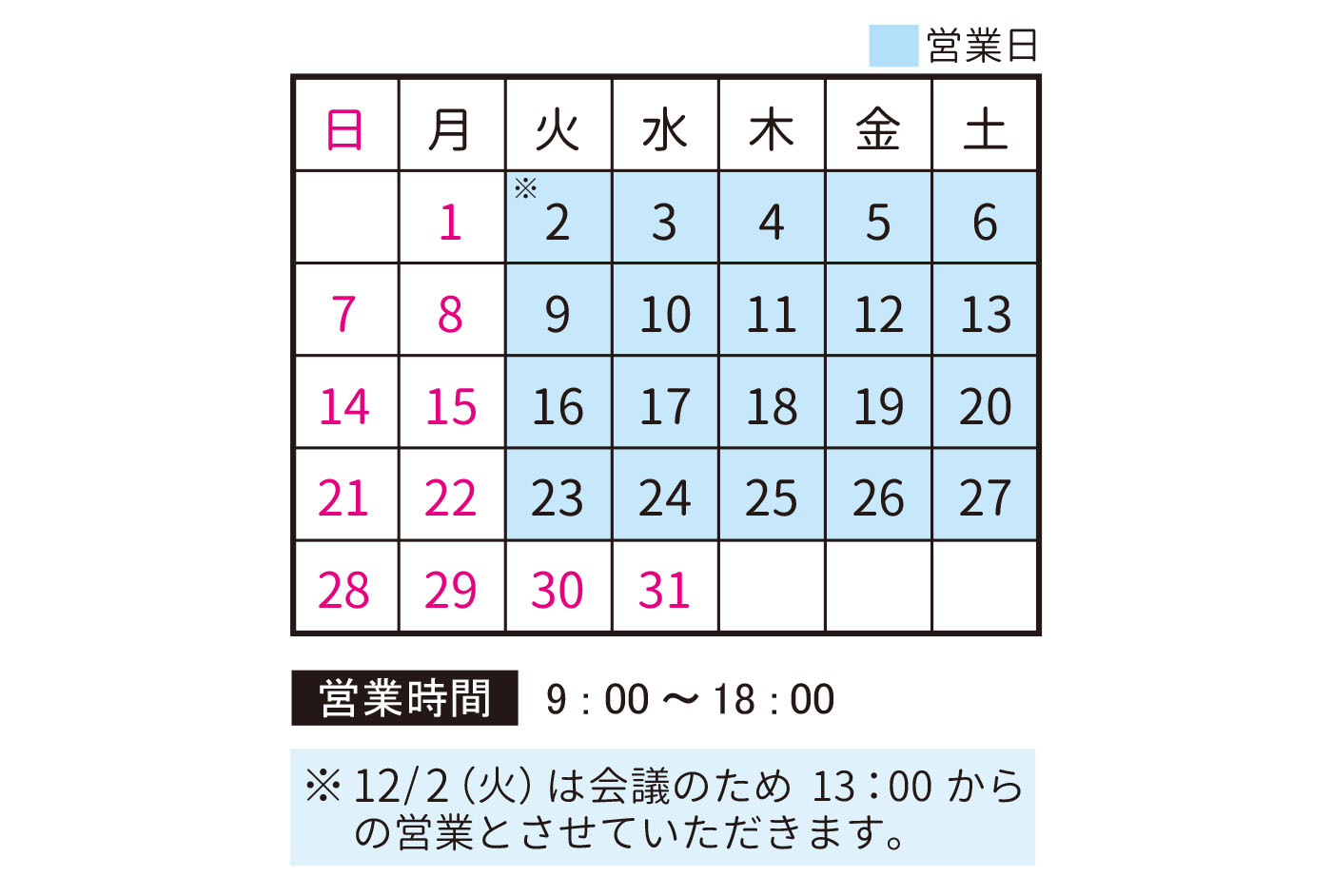 12月営業日のお知らせ